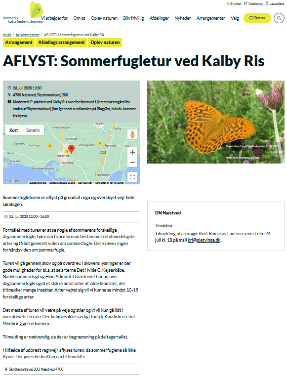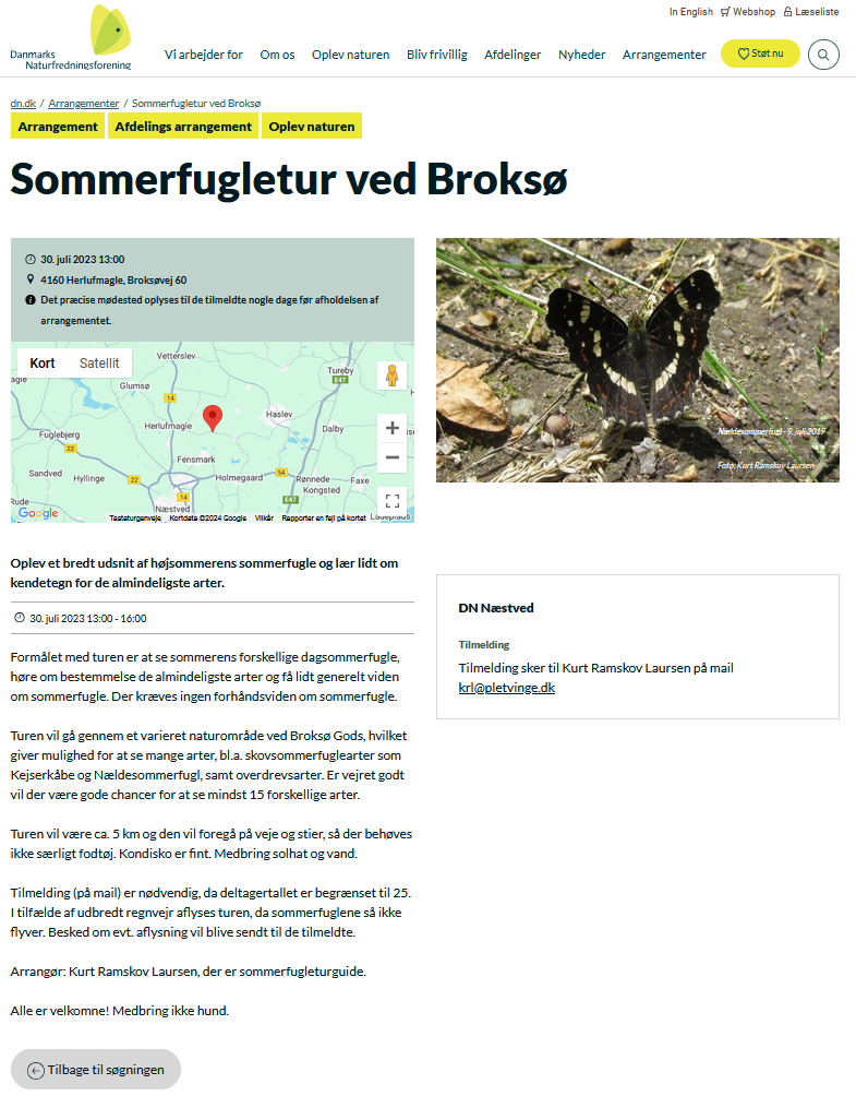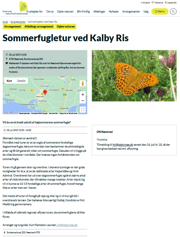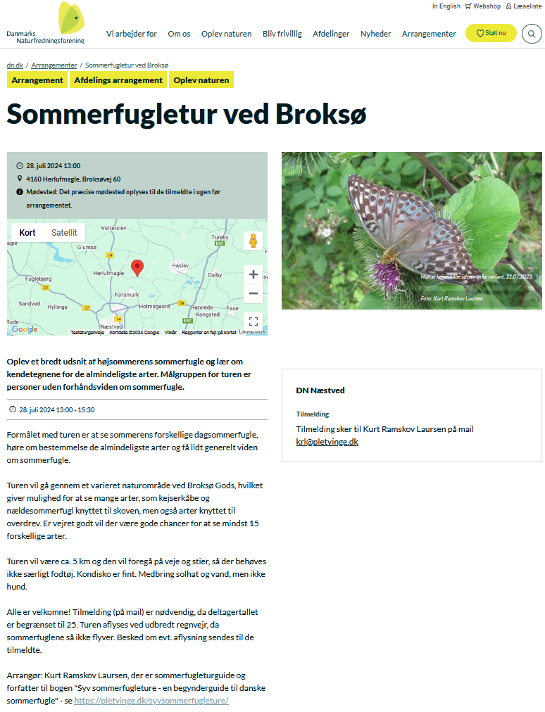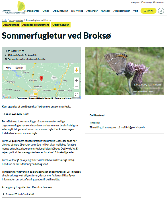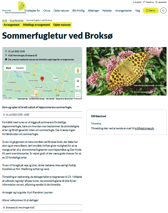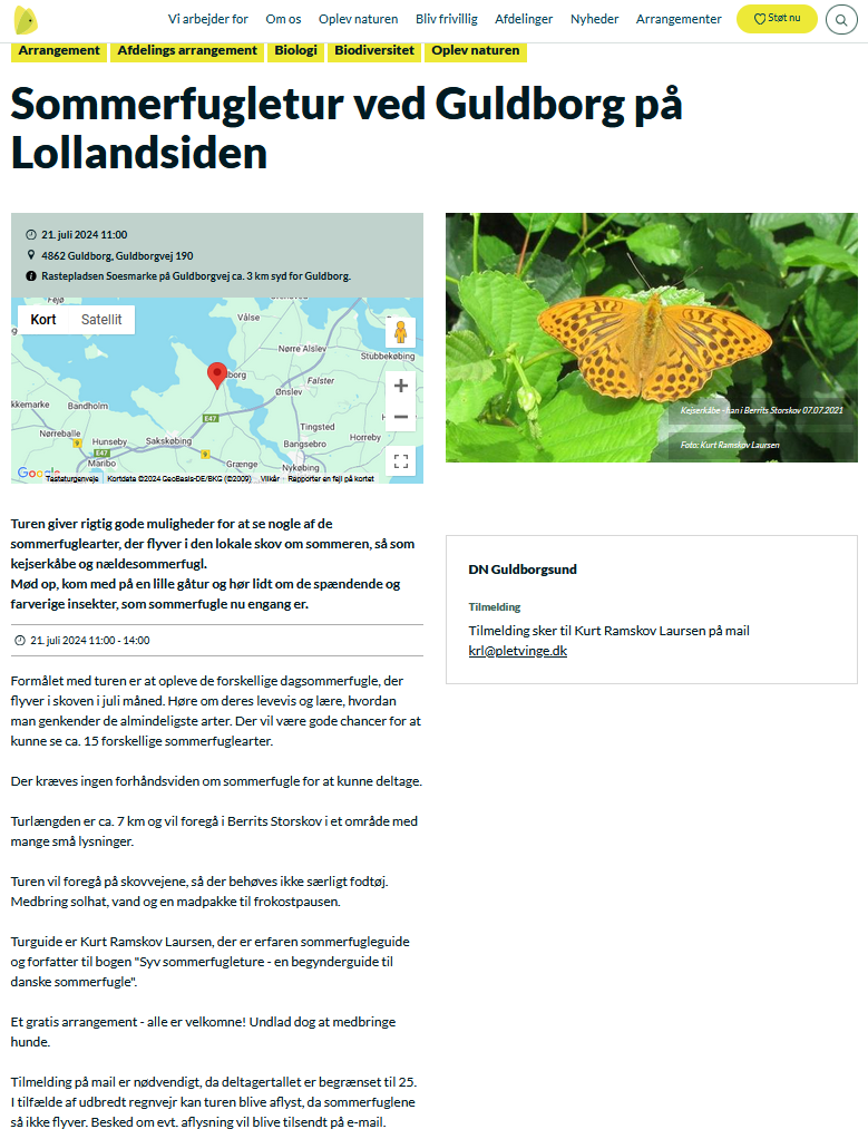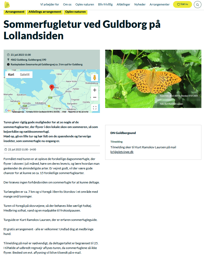 Arrangør: DN Guldborgsund. Perfekt vejr med solskin og 27 grader. På turen blev set de typiske sommerfuglearter i sommerskoven: